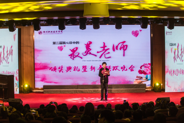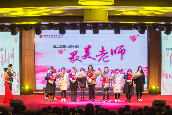 为深入学习贯彻习近平总书记在党的十九大报告中提出的“加强师德师风建设,培养高素质教师队伍,倡导全社会尊师重教”的要求,我校于2017年10月-12月开展了第二届“我心目中的最美老师”评选活动,1月12日晚,我校第二届“我心目中的最美老师”颁奖晚会暨新年联欢晚会在一号报告厅隆重举行。