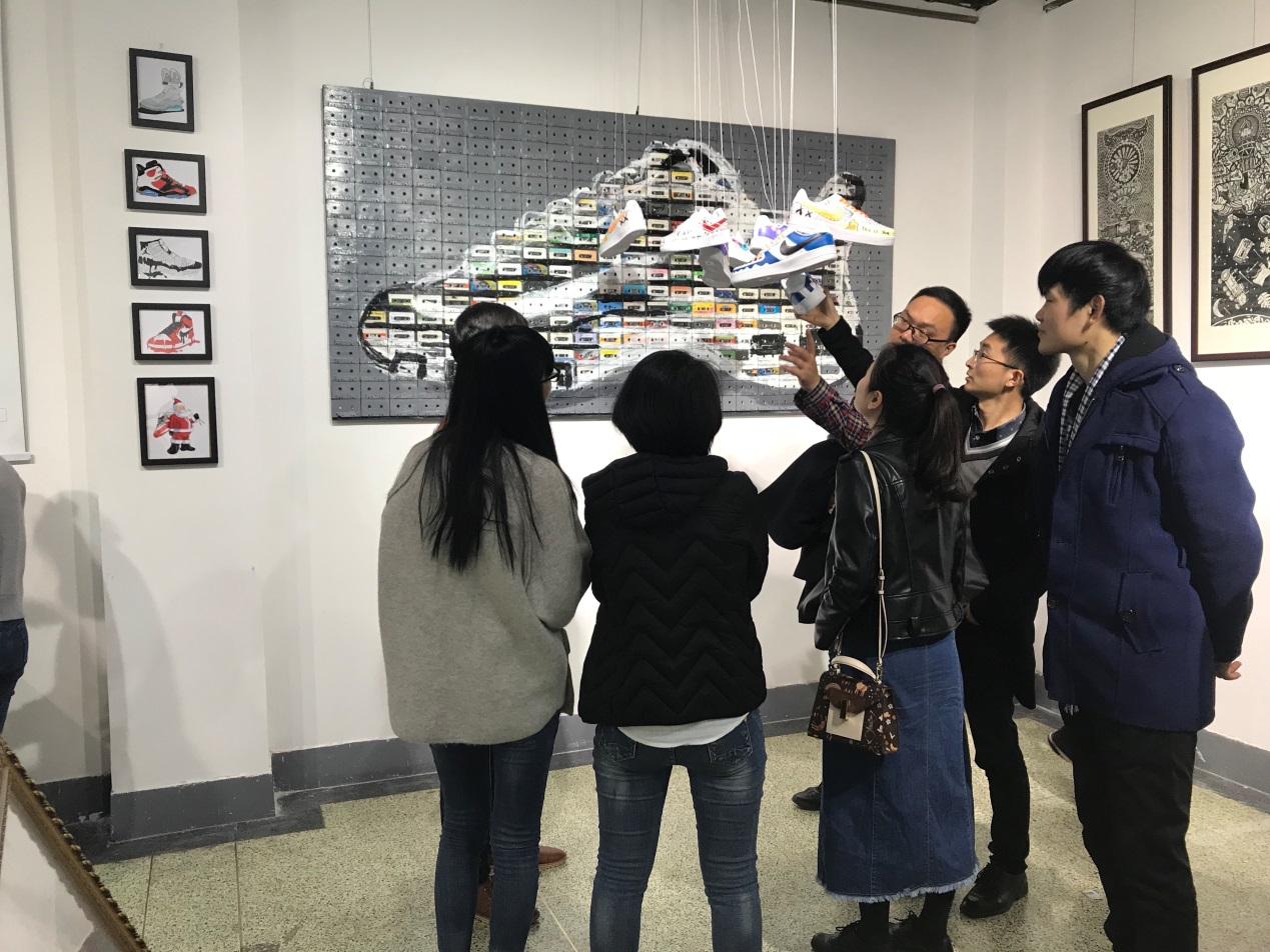 最后,新任教师来到艺术设计学院,参观了学生毕业设计作品展。作品展内容丰富多彩,表现手法各异,许多新任教师情不自禁拿出手机,拍下优秀的作品,并赞叹艺术设计学院师生的创意与才华。