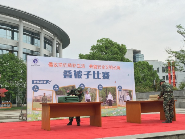 叠被子比赛给同学们搭建了一个展示自我的舞台,有利于督促同学们养成良好的生活习惯,提高寝室文明观念。(学生处 吴春红)