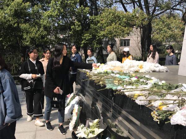 随后,同学们来到府山公园为革命烈士扫墓。站在纪念碑前,同学们怀着无比崇敬的心情,向逝去的先烈们默哀致敬,敬献鲜花,并宣誓明志。默哀时的思绪,是我们和烈士英灵最接近的地方;朵朵白花,寄托着众学子对烈士们的无限哀思;坚定的宣誓声,表达着在场所有人中华民族伟大复兴而努力学习的决心。