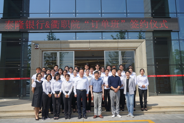 面向社会、面向市场办学,大力推行工学结合、服务地方经济是我校校企合作的宗旨。基于此,5月9日中午,我校在浙江泰隆商业银行衢州分行举行第二期“泰隆班”签约仪式。合作发展处处长郑立平、经济管理学院院长朱芝洲、经济管理学院党总支书记斯彬彬、浙江泰隆商业银行衢州分行行长赵一勇出席,第二期“泰隆班”全体学员参加。