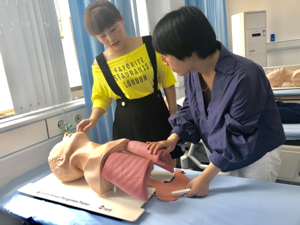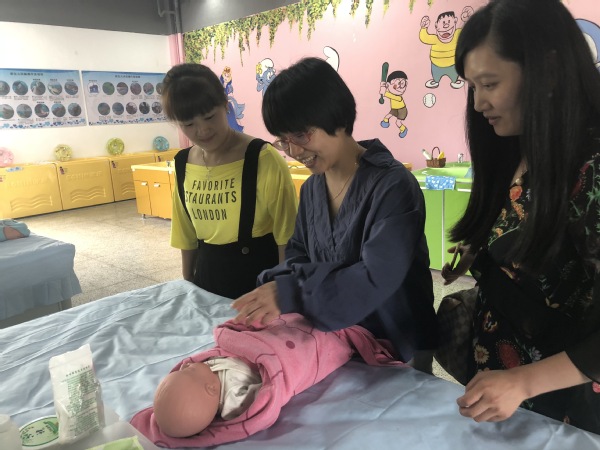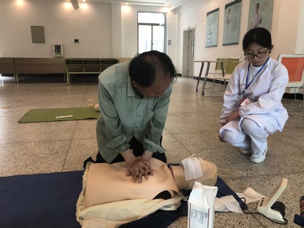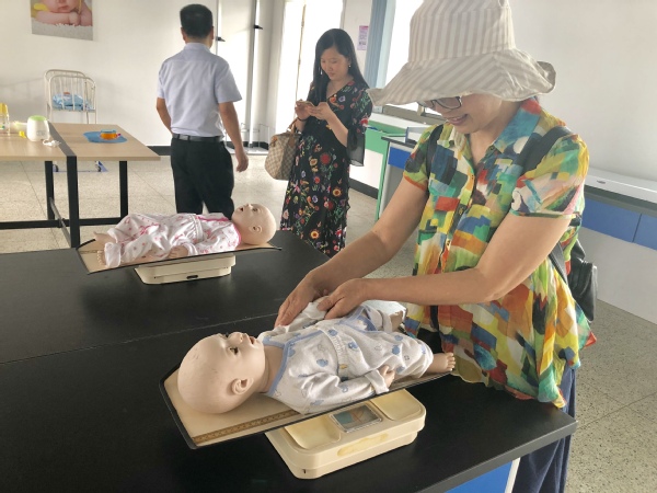 医学院母婴护理实训基地里,陈女士在专任老师的指导下体验婴儿抚触,“今天通过老师指导后才知道,手法、技巧、力度与频率都是和婴儿的交流,婴儿能从中感受关爱和建立安全感。”婴儿沐浴、乳房推拿等也吸引了不少二孩妈妈前来拜师学艺。在基地一楼,65岁的市民陈敏在专业人员指导下有节奏地为模拟人进行心肺复苏,“年纪大了,学这个很有用,如果有意外情况发生,能够帮助身边的人。”