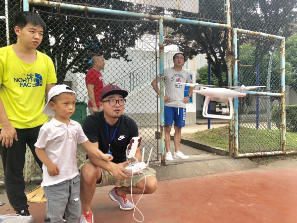 篮球场上小市民在妈妈的陪同下到校体验了无人机的操作,朝着高空镜头里的自己挥了挥手。我校师生们也纷纷慕名这“天眼”而来,通过镜头,看到了高空视角下不一样的美丽衢职。