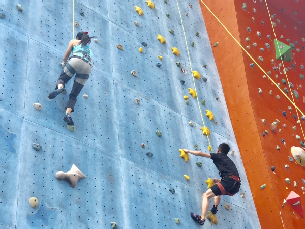 攀岩墙前更是热闹非凡,中高职学生们和慕名前来的市民朋友们终于实现了“飞檐走壁”的武侠梦。江山职教中心17计算机4班的姜颖俊很早就听说衢职院的攀岩墙了,今天总算体验了一把,“两年后入学衢职院,我也要加入攀岩社。”市民朋友还与即将代表中国出征2018年世界大学生攀岩锦标赛的医学院15护理4班学生杨梦蝶同场竞技,“我也曾经与国家队队员站在同一条起跑线上过,今天真来对了。”