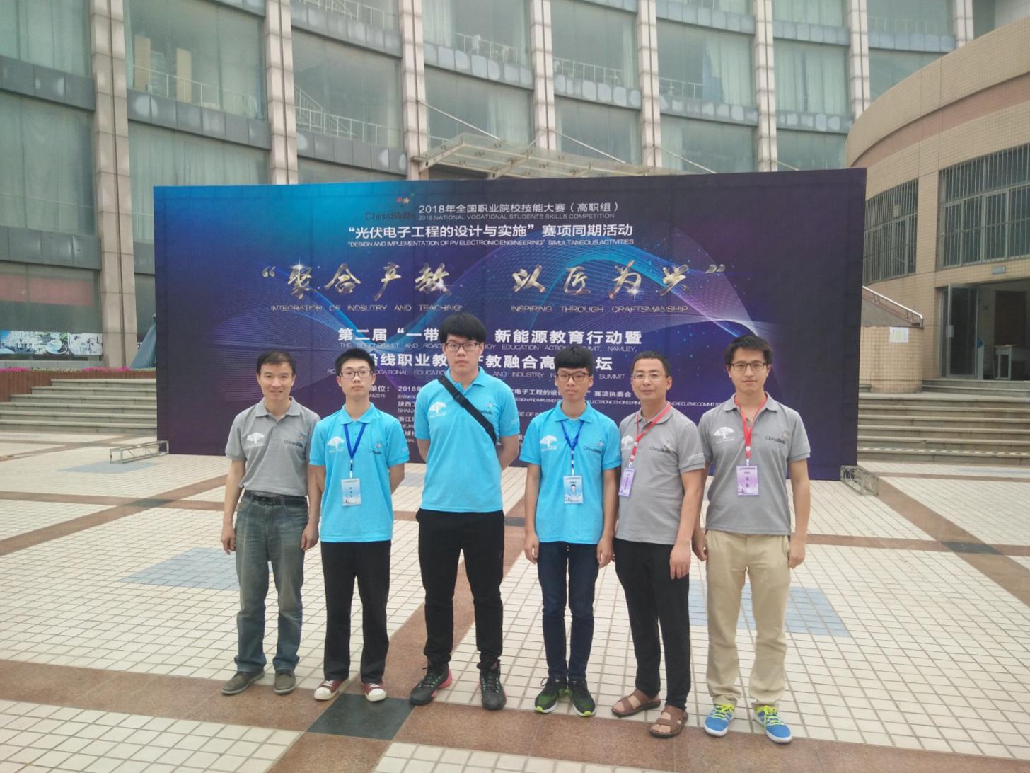 5月20日,2018年全国职业院校技能大赛高职组“光伏电子工程的设计与实施”赛项在陕西工业职业技术学院落下帷幕。我校信息工程学院余剑、郑敬良和陈海伟三位同学组成的代表队,在王真富和廖东进两位老师的指导下,凭借实力稳定发挥,获得二等奖。
