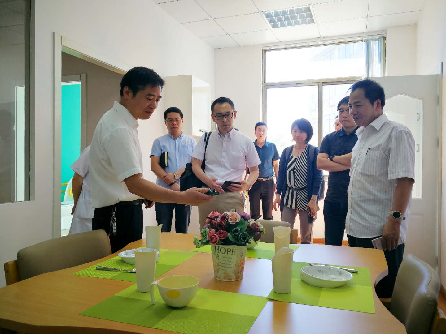 专家组一行首先在校党委委员、副校长傅元勋及校外事办、医学院和继续教育学院等部门负责人的陪同下,参观了医学院养老护理营养膳食、老年养护区等相关实训室。