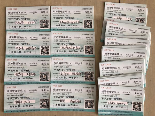 “这里是他们梦想开始的地方,在经济管理学院的三年大学生活,也将是他们漫漫人生的必‘经之路,希望他们能兑现自己的诺言,充实度过大学生活。我会替他们保留好这些特殊的火车票,也将在日常工作中,引导他们珍惜时间,实现梦想,成就自我。”18英语1、2班班主任吴逸冰看着在通往梦想的火车票上奋笔疾书的新生,如是说。