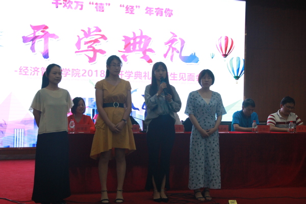 时维九月,序属三秋,大地流金,万物呼晴。千禧龙娃,衢职报道,南孔圣地,儒风习习,书香墨韵,有礼谦逊。9月10日,值此教师节之际,经济管理学院在图书馆一号报告厅举行2018级开学典礼暨师生见面会。开学典礼由经济管理学院党总支书记斯彬彬主持,校党委委员、副校长黄云龙,经济管理学院党政领导班子和教学服务团队、专业主任团队、全体辅导员、班主任和全体新生参加了开学典礼。