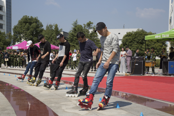 近日,开元网页版社团嘉年华活动火热开展,各社团形式多样、创意无限、别出心裁的展示活动,吸引了大批新生驻足围观。动漫社的真人Cosplay(角色扮演),十分吸引眼球;汉服社的姑娘们裙裾飞扬,举手投足间展示着中华民族的千秋韵味。图为轮滑社成员展示侧行过障碍。
