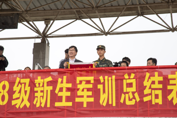 10月19日上午9时,我校2018级新生军训总结表彰大会在田径场隆重举行,校领导江爱民、陈青、黄云龙、章加春、何百通、徐浪静、孔庆红出席本次表彰大会,大会由副校长傅元勋主持。