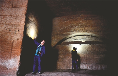 防空洞内、普查的思绪似乎回到七十多年前的二战