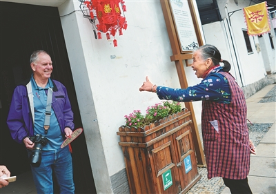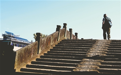 10月15日,细雨蒙蒙,正在衢州访问的美国雷德温艺术家查普(音译),沿着当年“杜立特突袭”美军飞行员的脚步,来到空军第十三航空总站旧址,寻访76年前美国老兵的衢州足迹。