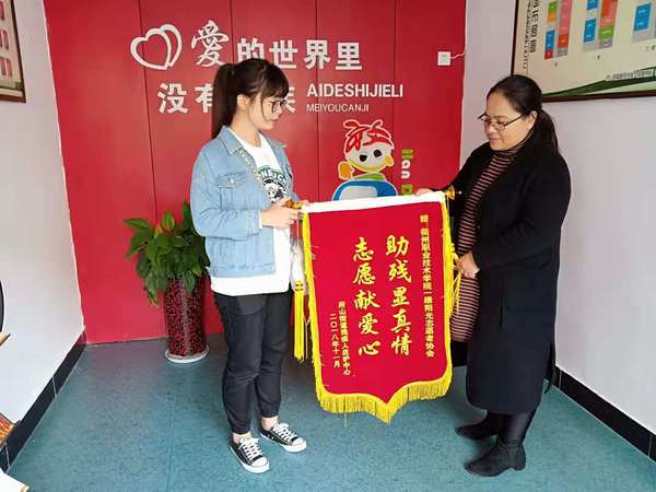 这些“憨豆儿”常住于府山街道残疾人居家照料中心,经常来这里参加志愿服务活动的是经济管理学院“一缕阳光”社团的小伙伴们。为感谢他们对该中心“憨豆儿”数年如一日的悉心照顾和耐心教导,11月12日,府山街道残疾人居家照料中心为经济管理学院“一缕阳光”志愿者协会赠送锦旗。