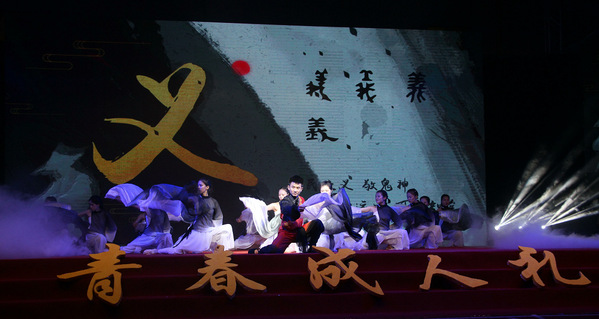 力行:知行合一,做实干家。校礼仪队上演的礼仪走秀《礼尚雅韵》,给观众们带来了一场社交礼仪与传统文化的盛宴。校舞蹈队带来的舞蹈《针灸》,用舞蹈追溯先贤,歌颂中华传统文化的瑰丽。师生代表演绎的诗朗诵《共筑中国梦》,慷慨激昂,诠释了华夏儿女们同心共筑中国梦的美好心愿。