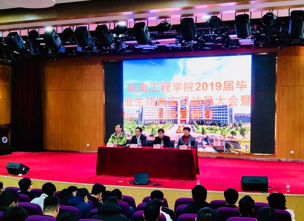 2018年11月22日至23日,机电工程学院在图书馆一号报告厅举行了2019届毕业生顶岗实习动员大会暨企业宣讲会。出席动员大会的有机电工学院党总支书记兼院长巫少龙、副院长周明安、副院长魏小华、党总支副书记范洪梅。
