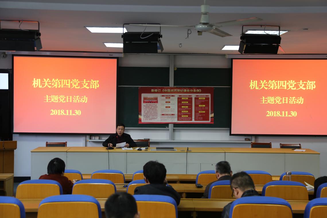 11月30日,机关第四党支部全体党员大会在阶东1-1举行。支部书记徐荆带领全体学员逐字逐句学习了修订后的《中国共产党纪律处分条例》和《中国共产党支部工作条例》。