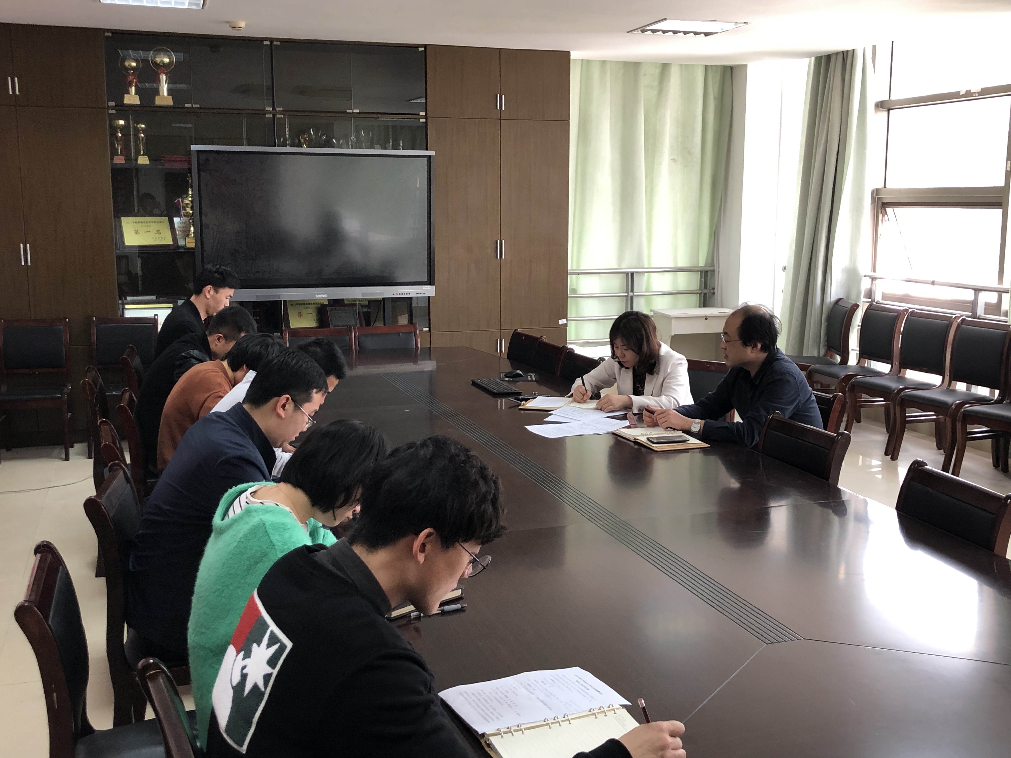3月20日下午,为积极配合省教育厅做好我校2019年大学生体质健康抽测工作,信息工程学院在行政楼724会议室召开大二年级班主任动员大会。学院党总支书记叶俊主持会议并讲话,党总支副书记金小燕及全体大二年级班主任出席。