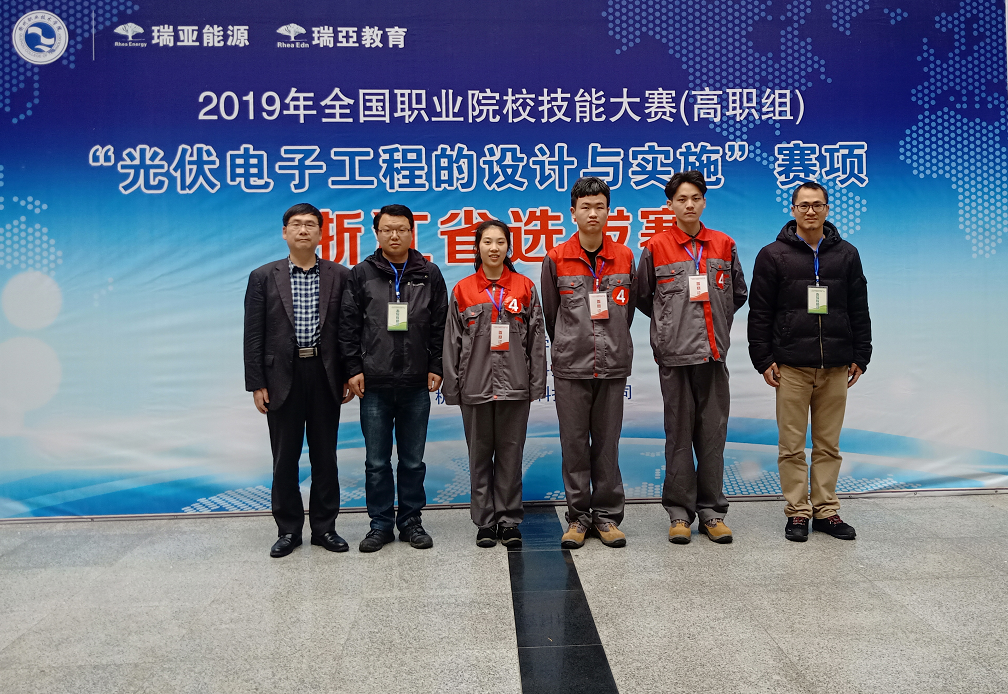 经过半年多扎实训练、难题攻克、模拟演练, 8支队伍在赛场上均展现了良好的专业技能水平、团队协作意识与职业素养。我校共派出两支队伍参赛, 由光伏工程技术专业和应用电子专业学生组成,经过3.5小时的激烈角逐,信息工程学院卢艳、黄志平老师指导的许伟军、邱沁沁、陈祖明三位同学获得一等奖,刘晓龙、方晓敏老师指导的汤嘉鹏、沈林泽和石伟祺三位同学获得三等奖。