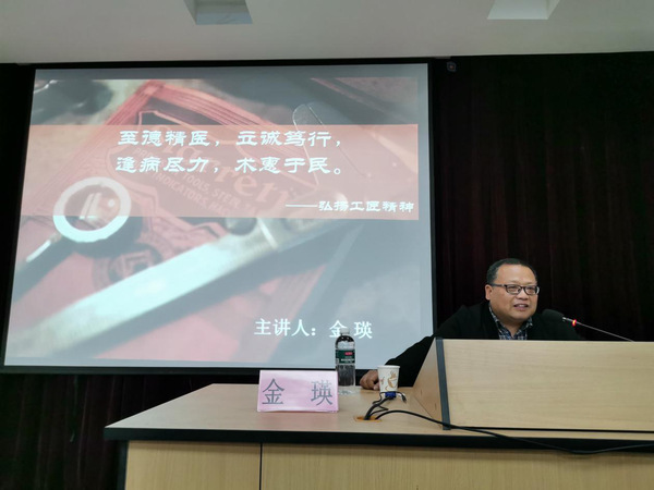 金瑛从自身三十余年的中医从业经历与感悟出发,结合当前时代背景与热点话题,围绕“时代呼唤‘工匠精神’”、 “至德精医,少年识得医者心”、 “立诚笃行,传承非遗之技艺”、 “青年如何培养‘ 工匠精神’”四个方面展开,将工匠精神与生活联系在一起,激发中药专业师生,要热爱自己的工作与学习,把每一个当下做到最好,把梦想当信仰,持之以恒地追求下去,坚持精益求精,最终成长为一名专业、爱岗、优秀的中医药人!