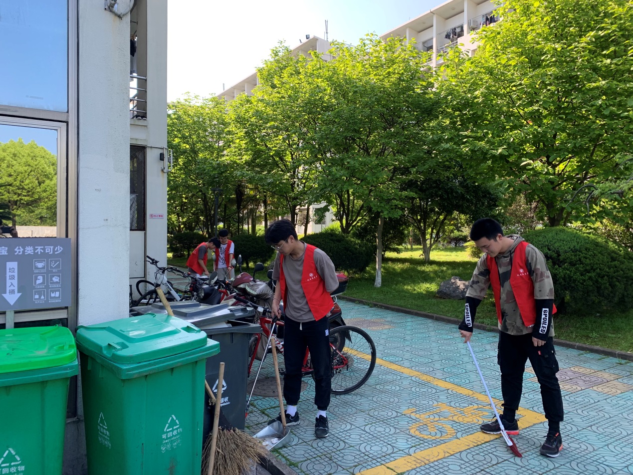 汽检党支部学习小组对中央大道以西及寝室周边区域拾捡垃圾,维护校园美好环境。
