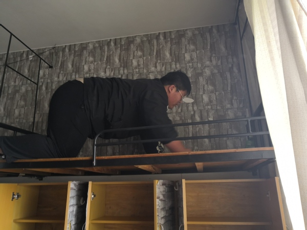 毕业季,志愿者打扫部分在外实习生返校入住寝室,迎接实习生。