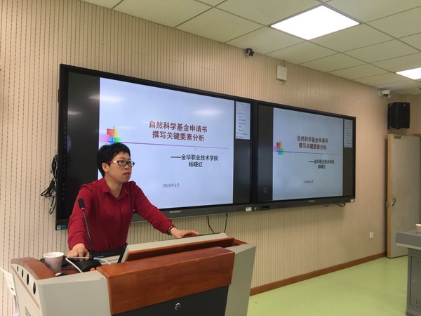 为鼓励我院教师积极申报基金公益类研究项目, 提高命中率,调动科研项目申报积极性。5月14日下午,科研处邀请了金华职业技术学院杨晓红教授为广大教师作基金公益类研究项目申报技巧讲座,杨晓红教授主持过浙江省自然科学基金项目3项,参与国家自然基金项目2项,具有丰富的项目申报与科研经验。