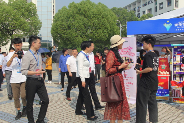 本届工商模拟大赛最大的特色在于青春助力乡村振兴。为进一步发挥衢职学生在乡村振兴中的作用,为本地行业、企业提供“衢职智慧”,衢职职业技术学院经济管理学院与衢州市农业农村局、衢州市团市委合作,于今年3月—5月举行以“青春助力 乡村振兴”为主题的创新创业调研实践活动。通过政校企三方联动,以调研报告、创业论坛、农产品展示会等形式引导学校师生“爱农学农 研农助农”。当日工模现场是整个活动的实体展销阶段。共邀请本市柯城区、衢江区、龙游县、常山县、开化县、江山市六个县(市、区)农创客项目和知名农业企业等共计38个,按照地域及特色分成七大馆区进行展示展销。