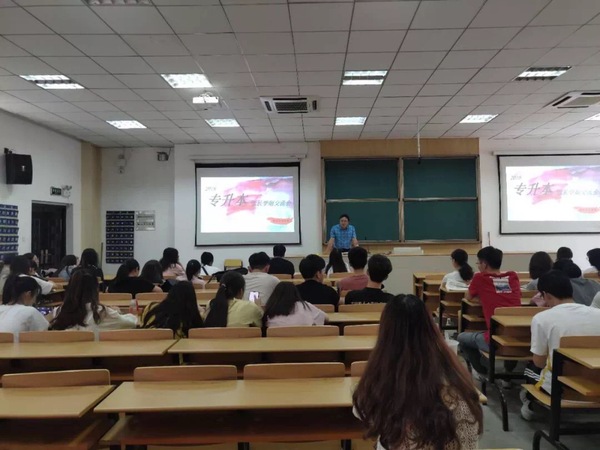 交流会伊始,何昊老师介绍了2019届毕业生专升本的整体情况,肯定了2019届同学在专升本方面取得的良好成绩,提出了对2020届报名专升本同学的期望:端正态度,提前准备,尽早规划。