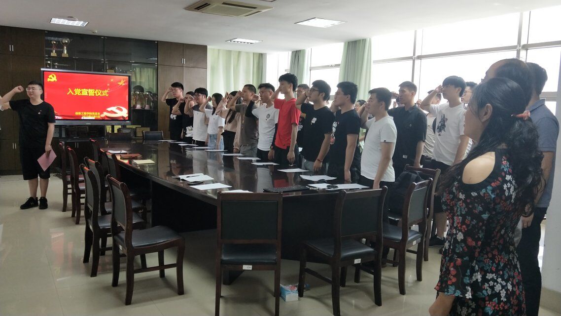 6月5日上午,信息工程学院隆重举行新党员宣誓仪式及毕业生党员座谈会,党总支书记叶俊,学工办主任谷明慧,党支部书记及37名学生党员和预备党员参加宣誓仪式。会议由邹琪帆同学主持。
