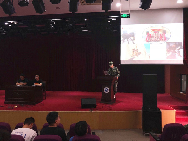 随后经管学院三名大学生退伍军人代表徐林鑫、徐磊、鲁威韬分享了自己在新兵连、服役部队的诸多日常生活:叠被子,野外拉练,阅兵,夜间紧急集合……强调自己在这过程中得到的锻炼、磨炼的意志、养成的习惯,直到今天依然受益匪浅,鼓励同学们入伍从军,到边疆、上海岛,冲云霄、入五洋,摸摸钢枪、 开开战车,过一过军歌嘹亮、军号响亮的生活。