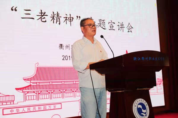 为深入开展“不忘初心 牢记使命”主题教育, 引导广大青年学生自觉向英雄学习, 激励青年学生学先进、守初心、担使命,10月18日下午1点30分,在我校一号报告厅内,近400名我校大学生现场聆听了“三老精神”宣讲团成员王冰雪、陈蓉蓉的“三老”事迹宣讲。会议由党委委员、宣传部部长孔庆红主持。