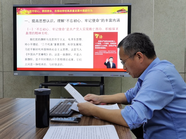 何百通同志在前期集中学习和充分调研的基础上,紧扣初心使命主题,结合职业教育特点,从“提高认识、检视差距、细照笃行、勇于担当”四个方面进行深入浅出的讲授。