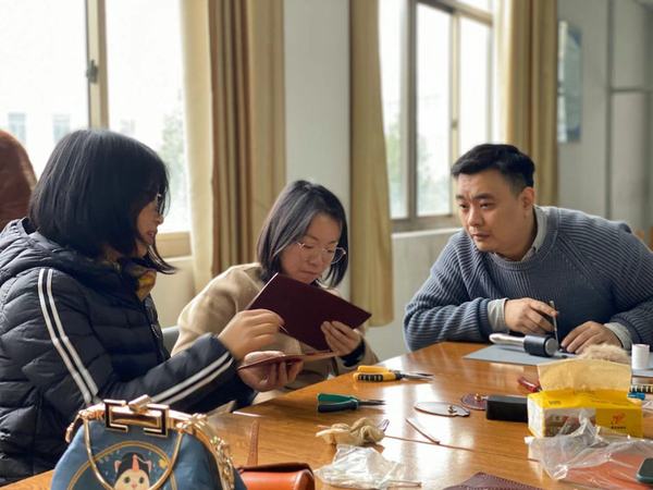 日前,女教职工DIY手工协会在学校图书馆提供的活动室,开展了手工制作皮具的活动。