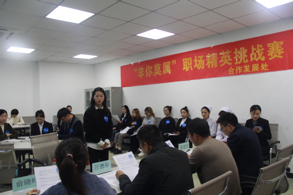 为还原职场面试过程,让衢职学子们提前体验真实的求职过程,掌握面试技巧,提早认清自己的职场方向,为就业做好充分准备。合作发展处举办了首届“非你莫属”职场精英挑战赛,邀请了浙江中瑞华会计师事务所注册会计师汪德军、杭州雷迪森柏丽大酒店招聘经理俞晓玲和衢州市工业设计协会秘书长钟国锋担任比赛评委,来自六个二级学院的22名选手参加。