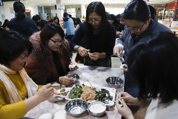 十月一,冬至到,家家户户吃饺子。冬至是中国农历中一个非常重要的节气,也是一个传统节日。为了弘扬传统饮食文化,丰富教职工业余生活,增进教职工之间的沟通交流,12月18日下午,后勤保卫处在冬至来临之前,组织开展“浓情冬至 爱在衢职”暨“粤衢杯”包饺子大赛。本次大赛吸引了全校一百多名教职工参加,教师们五人一组,分工合作共同完成比赛作品。衢州粤衢餐饮有限公司董事长徐晓芳、行政总厨祝志龙、面点师蒋民及后勤保卫处副处长金小燕共同担任评委。