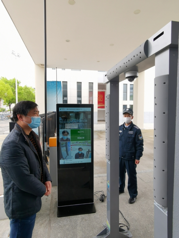 该测温设备为非接触式体温测量,可测量两米范围内通过的人员体温,如有发热人员通过则会进行警报,该设备的投入使用能极大提升学校在师生体温测量的安全性和工作效率。(后勤保卫处)
