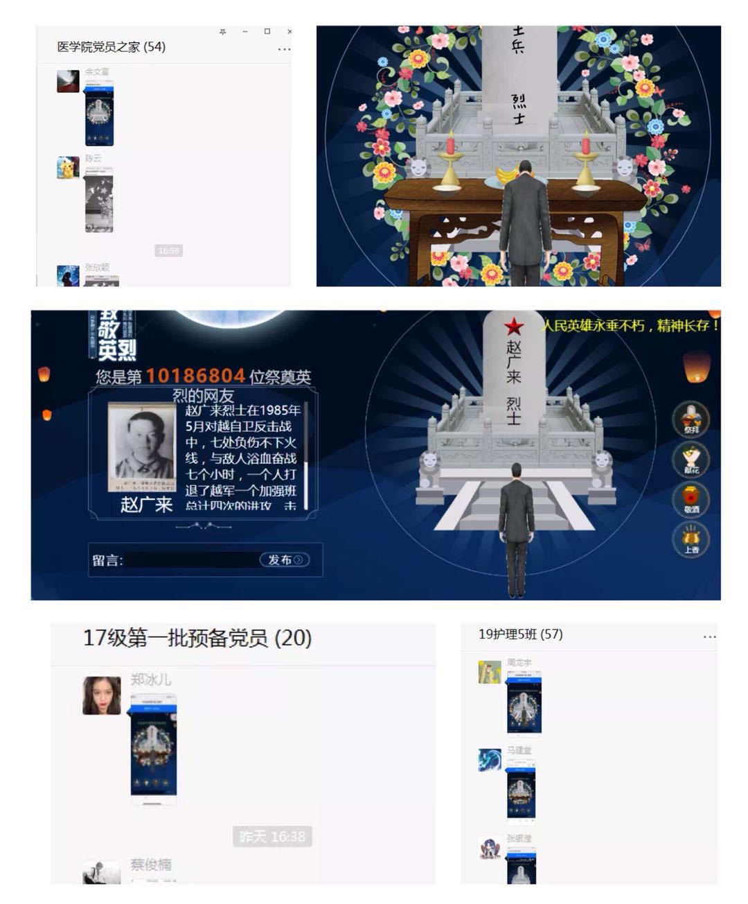 在这特殊的日子里,医学院党总支展开了一场“缅怀先烈,致敬英雄,同舟共济,众志成城——‘云祭奠’革命先烈”的线上清明祭英烈活动。全体师生党员及部分非党员教师、团员参加本次活动。
