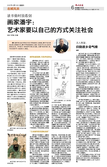 “艺术创作,跟现实生活有着千丝万缕的联系。而每一位艺术家也都以自己的方式关注着社会。”这个与绘画打了半辈子交道的人,微信昵称叫“墨汁头”,笔墨丹青早已融入了他的生命。疫情当前,衢州市文联发起抗“疫”主题作品征集活动,潘宇与衢州市美术家协会主席叶云龙一起组织发动《你的模样——衢州市抗疫微信画展》,得到了衢州画界热烈响应,《衢州美术》公众号更在近期连发了10期160多张精品抗疫画作,引发市民持续关注和热议。