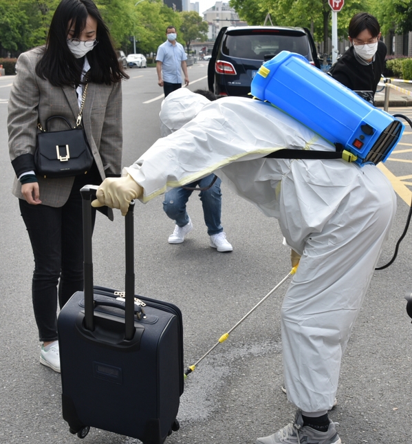 学生报到时家长及车辆一律不准进入校园,下车后对学生行李进行现场消毒。