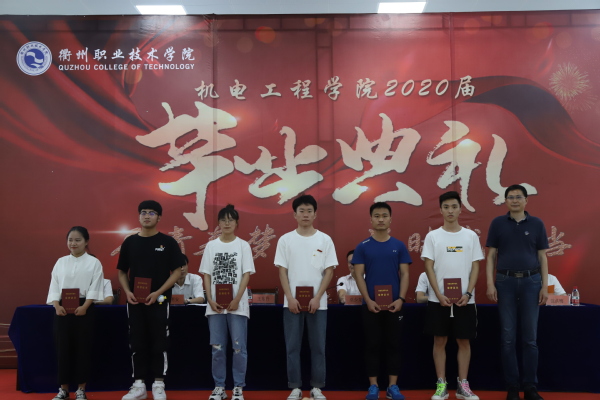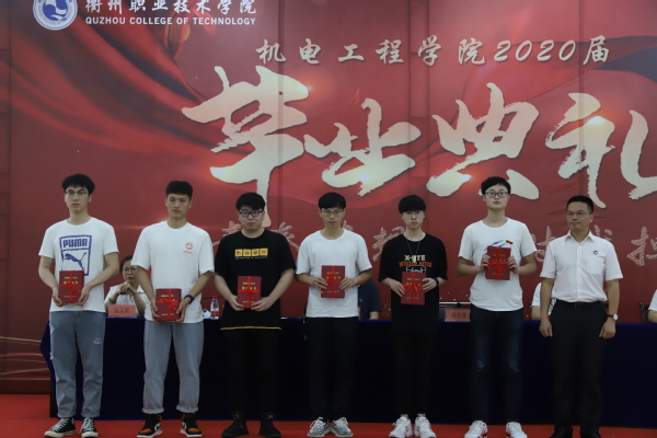 典礼第二项由优秀毕业生代表叶佳乐同学上台发言。他回顾了在校期间自己在实践、文体和志愿服务等各个领域努力进取,追求卓越的历程,勉励毕业生们带着理想和信心从母校出发,无论顺境还是逆境,无论机遇还是挑战,都要不断探索,不断前进,创造更有价值的人生。第三项,全体毕业生起立,大声向班主任老师们致以最真挚的谢意;典礼第四项,由机电工程学院院长周明安宣读关于表彰2020届省级、校级优秀毕业生的决定,王东升副书记和巫少龙副校长分别为省级优秀毕业生、校级优秀毕业生代表颁发了荣誉证书。