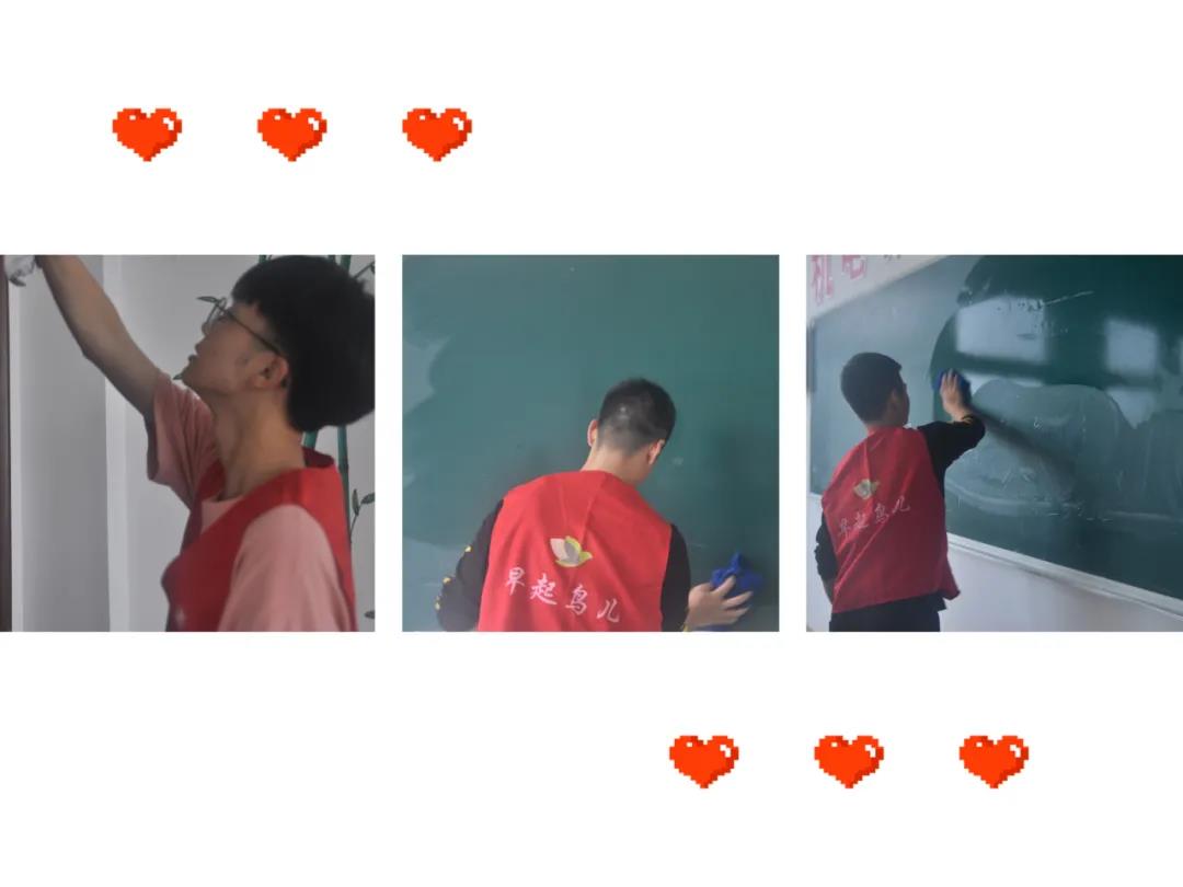 经过自主报名,共有65名入党积极分子主动要求参与到志愿服务中。志愿者们分为三个小组,由小组长带队,带着清扫工具开始了打扫工作。同学们发扬不怕苦、不怕累的精神,认真打扫,不放过教室的任何一个卫生死角。