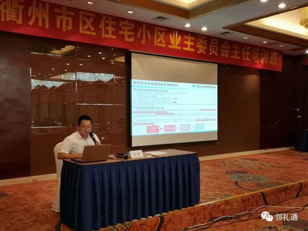 培训邀请绿城服务咨询集团副总裁胡登峰就各部门职责范围与风险、监管中的疑难问题和业主委员会选举实务等方面作授课指导,对大家提出的目前社区管理、小区物业管理中遇到热点难点问题进行答疑解惑。邀请衢州市论剑律师事务所律师周奕专业对《衢州市物业管理条例》、《业主大会和业主委员会指导规则》等法律法规进行解读。