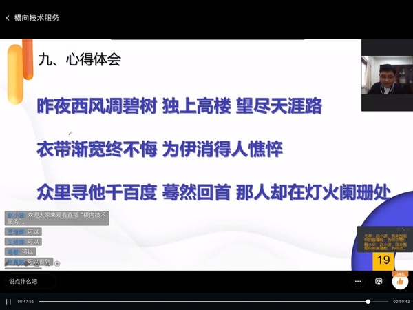 最后,赵小波老师以王国维《人间词话》三境界与在线所有老师分享他做横向课题的心得体会,以此鼓励大家多走进企业、多联系企业及有关单位,以获得更多理大的技术服务项目,更好地服务社会,培养学生,提升自己的能力。