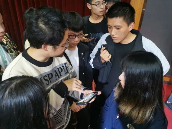 会后,林魂导演和学生进行互动、交流,在看到同学们自己设计的动漫作品时,林魂对学生的专业素质给予肯定,并鼓励学生发展自己的兴趣爱好,同时也表示,在接下来会对喜欢国漫的同学进行专业的测试及指导,期待能够发掘同学们更多的潜力,与学校一起为喜欢国漫的同学们提供一个专业的成长平台。