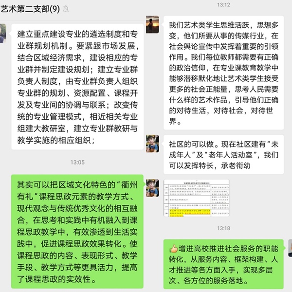 近日,全校范围内开展了学习贯彻市委徐文光书记讲话,对标“双高”建设,创建高水平职业院校,打造四省边际职业教育“桥头堡”等的大讨论。党支部教师以支部为单位,在支部群中针对“双高”建设、构建课程思政育人格局、职业教育的社会服务功能等方面畅所欲言,围绕学校专业建设工作,对标“双高”,紧密联系学校发展实际,谈认识、讲问题、找差距、提建议。