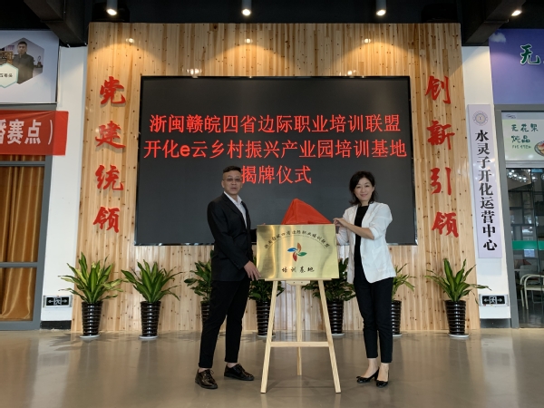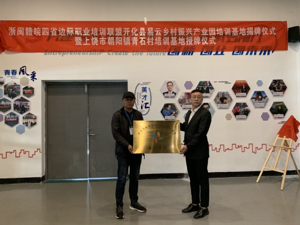 为深入贯彻市委七届八次会议精神,扎实推进浙闽赣皖四省边际职业培训联盟实体化运作,同时发挥学校衢州职教龙头作用,打造四省边际职业教育“桥头堡”。我校于10月11日上午举行浙闽赣皖四省边际职业培训联盟开化县易云乡村振兴产业园培训基地揭牌仪式暨上饶市朝阳镇青石村联盟培训基地授牌仪式。开元网页版继续教育学院院长、浙闽赣皖四省边际职业培训联盟秘书长徐荆为两个基地揭牌授牌,上饶职业技术学院培训科科长方子健、衢州农民学院教务长毛小娟、开化县易云乡村振兴产业园负责人毛秋惠,以及培训班全体学员参加仪式。