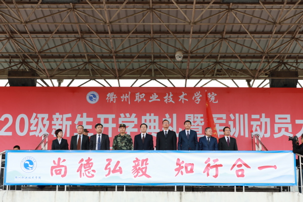 10月15日上午,我校举行2020年新生开学典礼暨军训动员大会。校领导徐须实、吕延文、王东升、傅元勋、章加春、何百通、巫少龙、徐浪静,武警衢州支队副参谋长李左灿出席,各二级学院党政负责人、辅导员、新生班主任及2020级全体新生参加典礼。由党委副书记王东升主持。