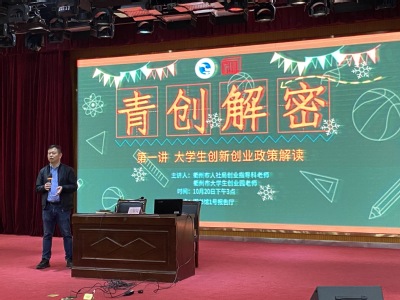 10月20日下午,创业学院“青创解密”活动正式开启,第一讲邀请到衢州市人力资源与社会保障局创业指导科雷老师、衢州市大学生创业园华老师和姜老师,为我校学生带来干货满满的大学生创新创业政策解读。