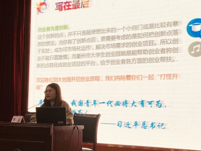 衢州市大学生创业园南街园的姜老师通过一个个优秀创业案例分享,总结出一个创业者需要具备的最基本的素质,勉励同学们好好努力。