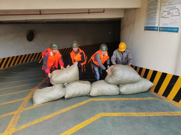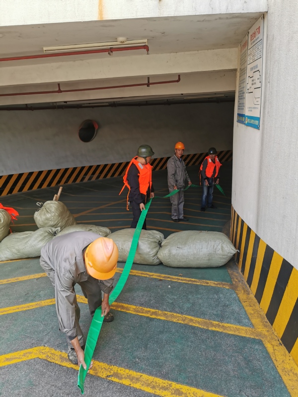 5 号公寓地下车库入口,上演了防汛救灾演练,接到潮汛救援指令后,防汛组第一时间赶到救援地点掌握最新灾情,并立即通知救援小组前来处理。
